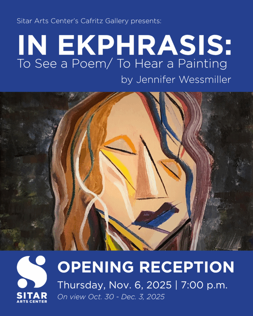 Sitar Arts Center’s Cafritz Gallery proudly presented “In Ekphrasis: To See a Poem / To Hear a Painting,” a powerful exhibition by local artist and poet Jennifer Wessmiller.